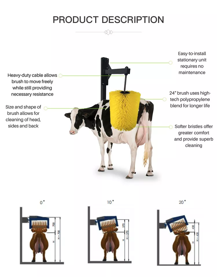 2. 0°/10°/20°의 각도 조절이 가능하여 다양한 크기의 가축에 적합하며 머리, 옆면 및 뒷면을 청소할 수 있습니다.